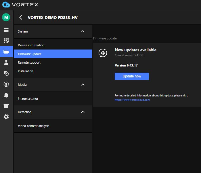 - VORTEX-Kameras lassen sich vollständig über das User-Portal mit Admin-Rechten konfigurieren und verwalten – inklusive Firmware-Updates.
