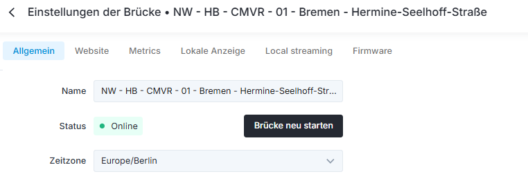 Hinweis! Bei Kameranamen gibt es eine begrenzte Zeichenanzahl.