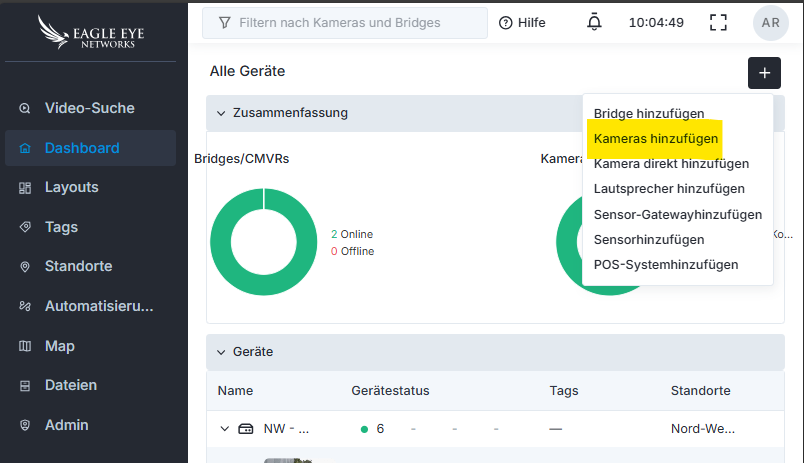 In Ihrem Fall sollten in der Regel nur kompatible Eagle Eye Networks Kameras aufgelistet werden.