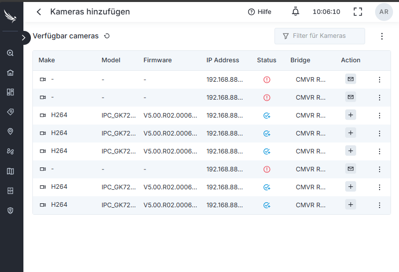Falls Sie eine Kamera eines Drittherstellers integrieren möchten, können Sie bei uns ein Support-Ticket erstellen und wir helfen Ihnen bei der Integration.