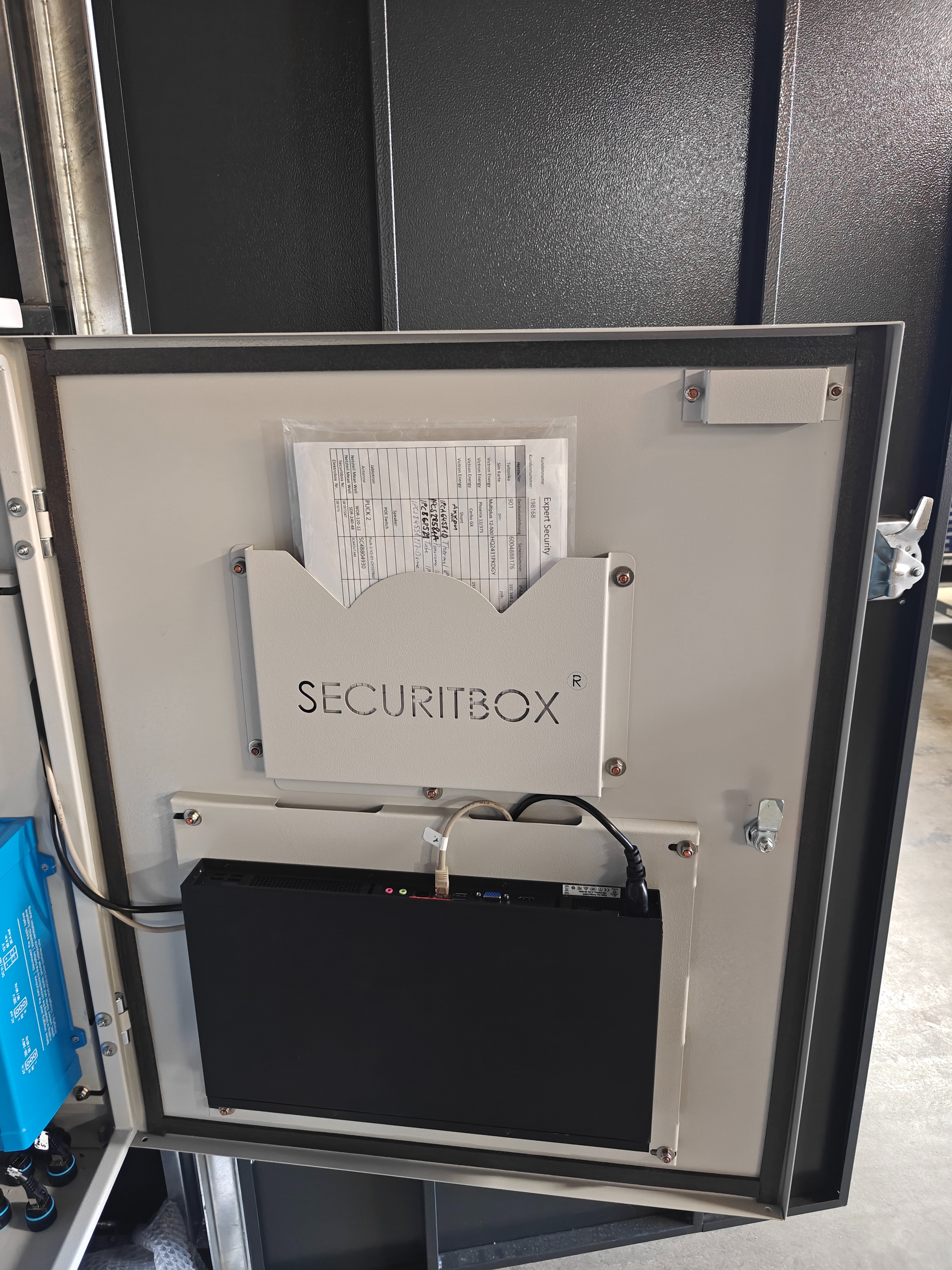| Schaltschrank mit Elektroinstallation | Schaltschrank-Tür mit Dokumentenfach |