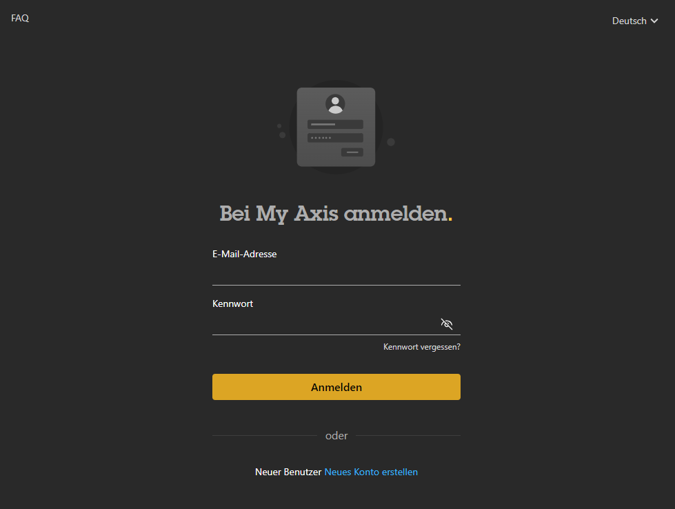 Für den Download der Firmwaredateien und Dokumentation ist meist ein AXIS Account erforderlich.