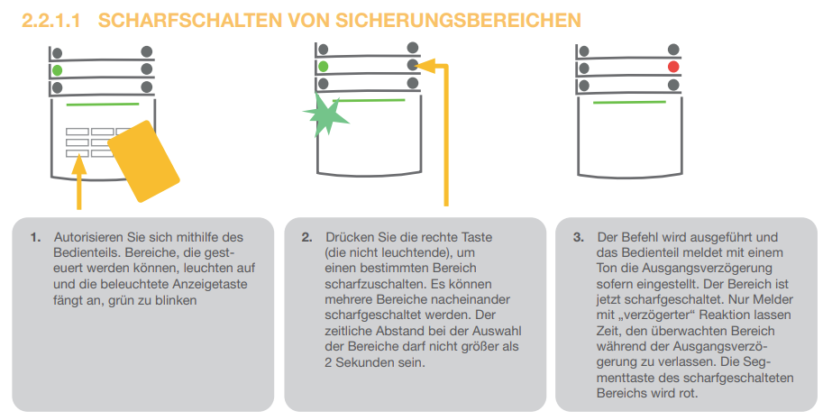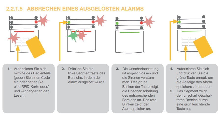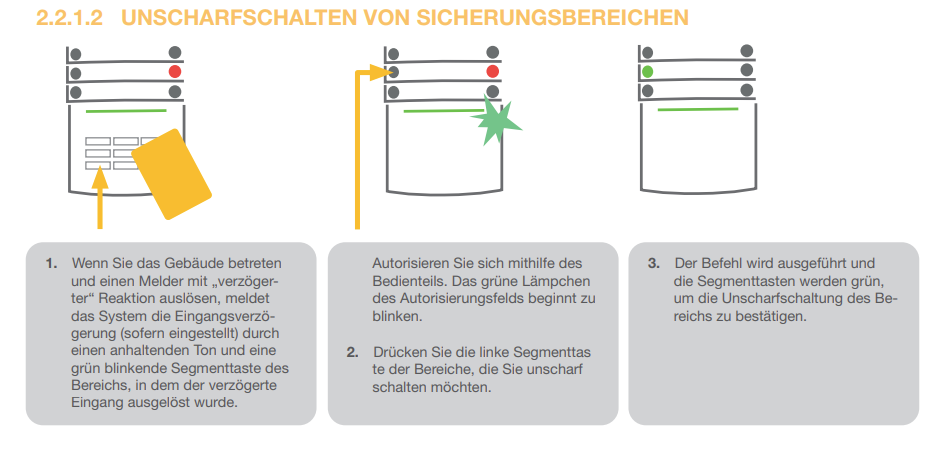Um die Alarmanlage unscharf zu schalten, ist die Autorisierung in Form von Benutzeridentifikationen immer erforderlich.