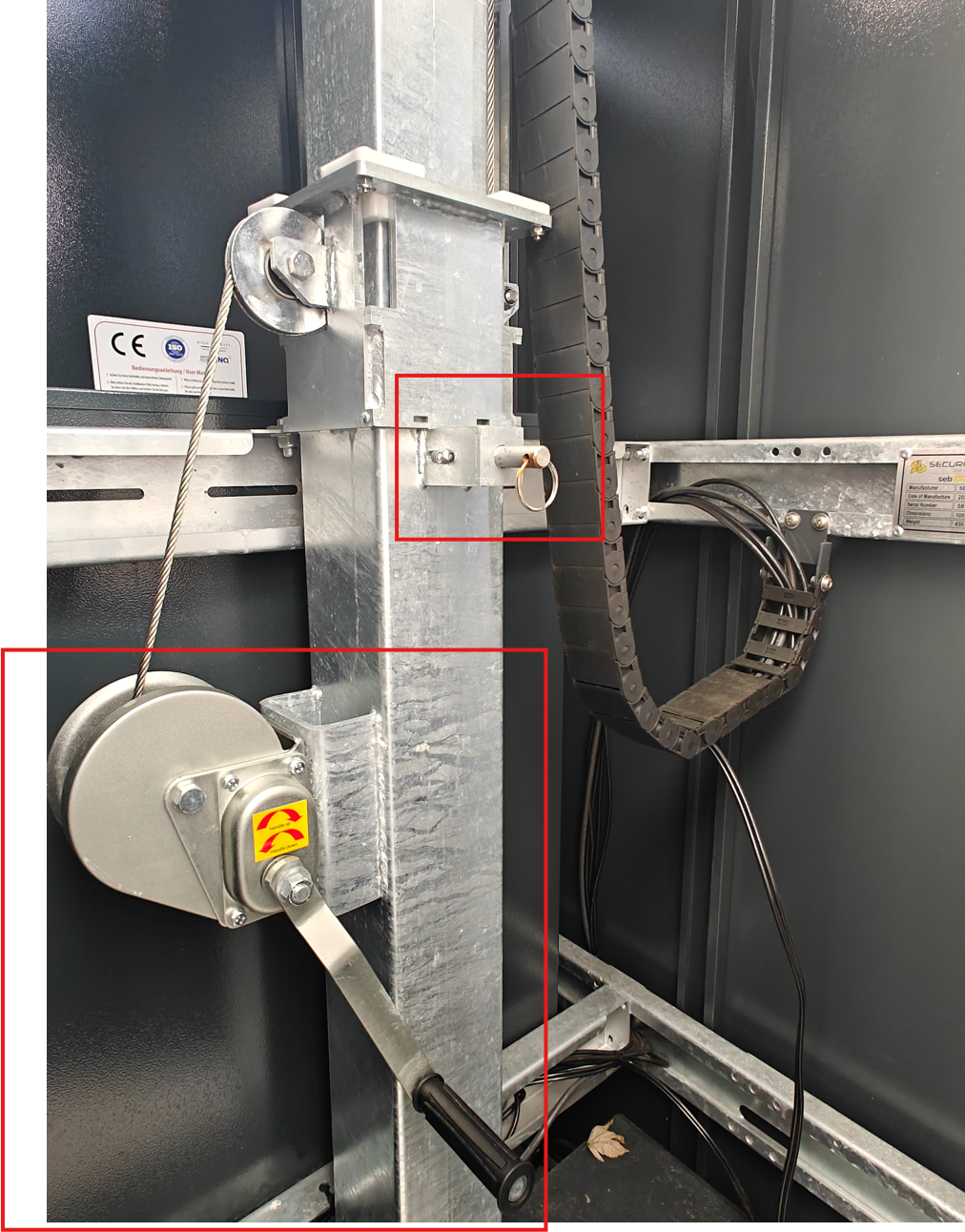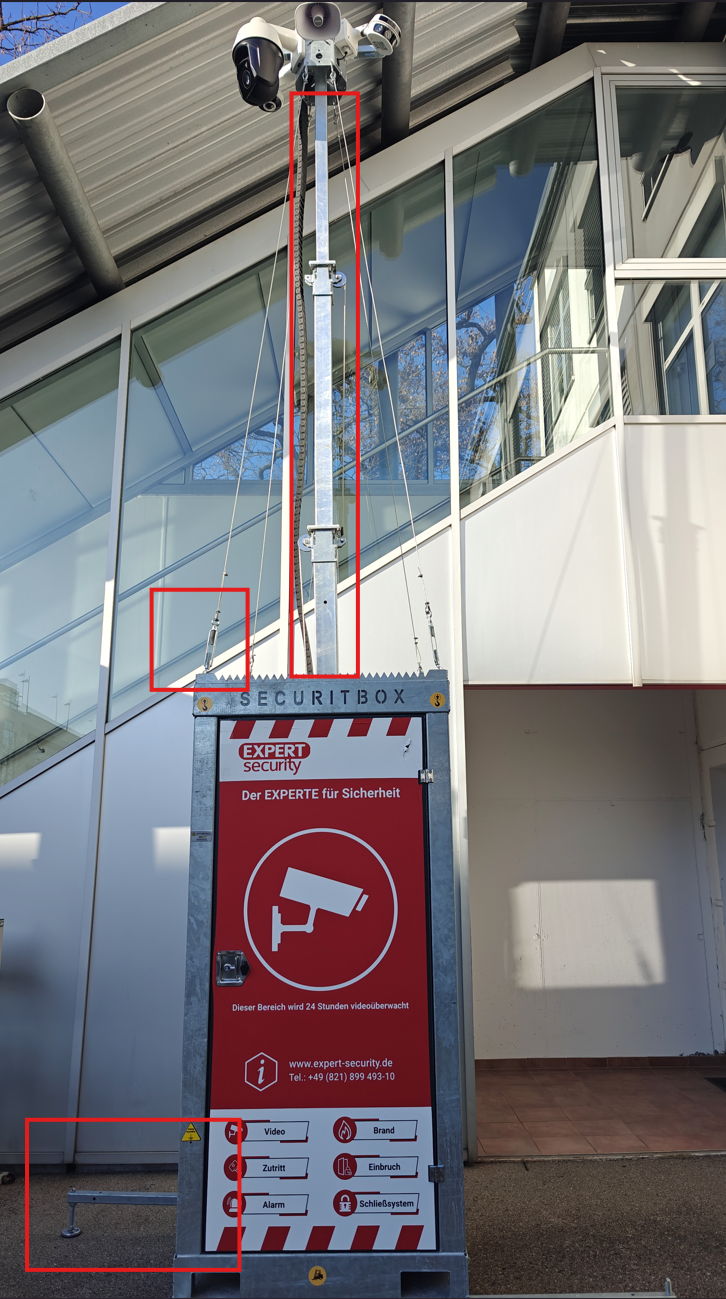 Dazu überprüfen wir zuerst ob der Hauptschalter, die Sicherungen und die Batteriekomponenten deaktiviert sind und ob der Turm standfest und eben steht.