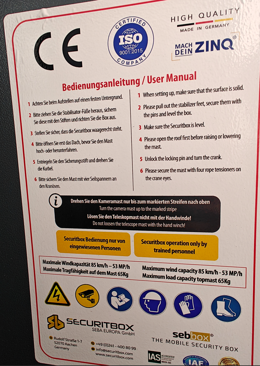 Die Bedienungsanleitung zum Aus- und Einfahren findet man beklebt im Turminneren: